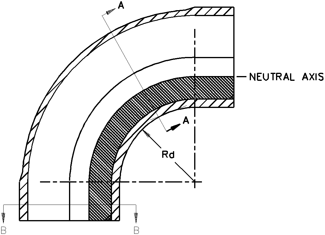 4.4.1 Pines bending machine. Precision metal-forming operations can be done on a Pines Rotary Bending Machine. Smooth bends can be formed to a bend accuracy of ±.5 degree. A complete involved shape can be produced by a series of bends. When a guide is bent, it is thrown into tension on the outside and into compression on the inside. Thickening the inner wall strengthens it; stretching the outer wall weakens it, tending to rupture (see figure 6) the guide. The guide cross section is reduced by the tension and compression. Two types of internal support that may be used in bending are: