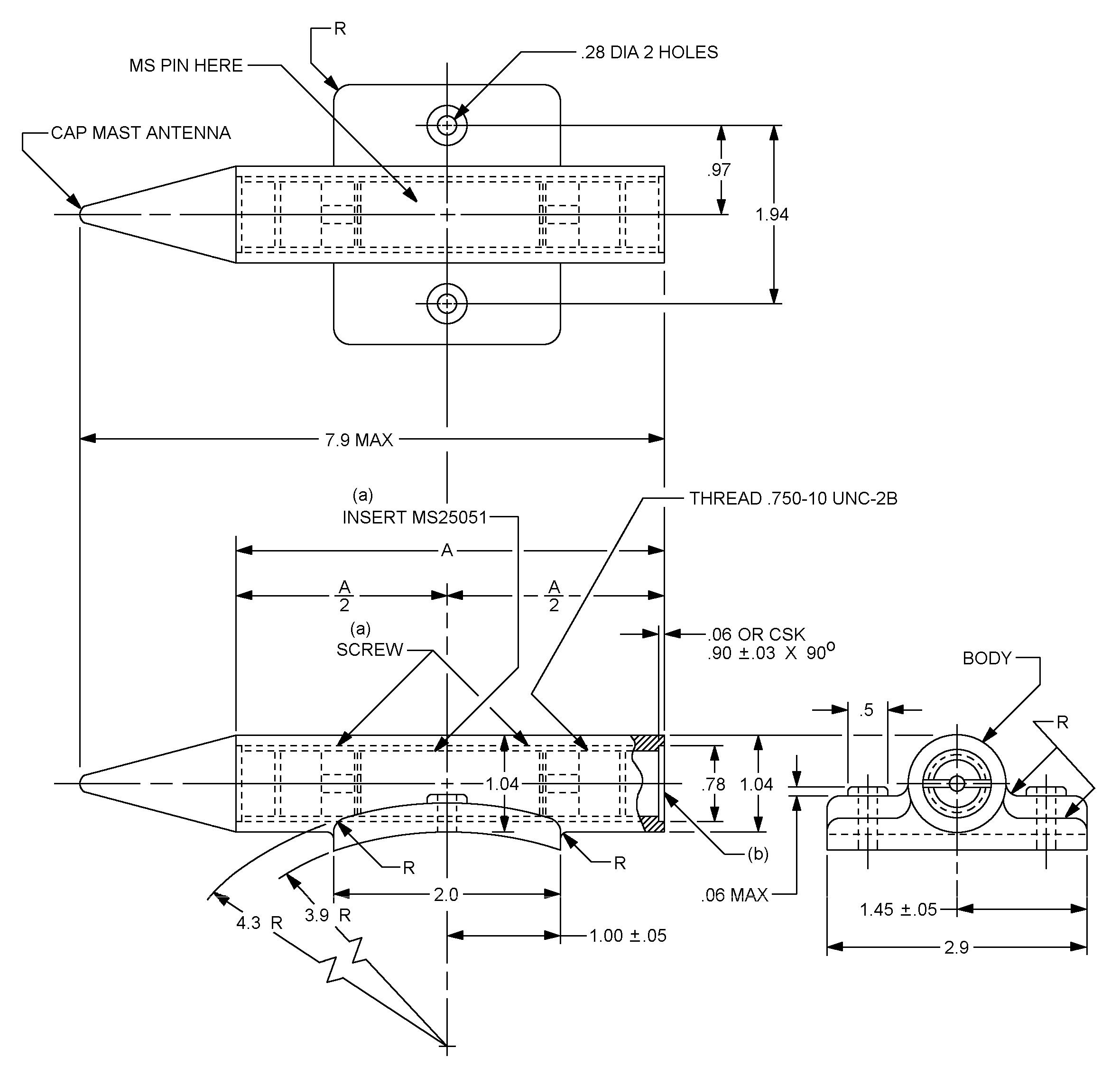 (b) Support sleeve MS25056 is a part of the antenna adapter for acquisition purposes.